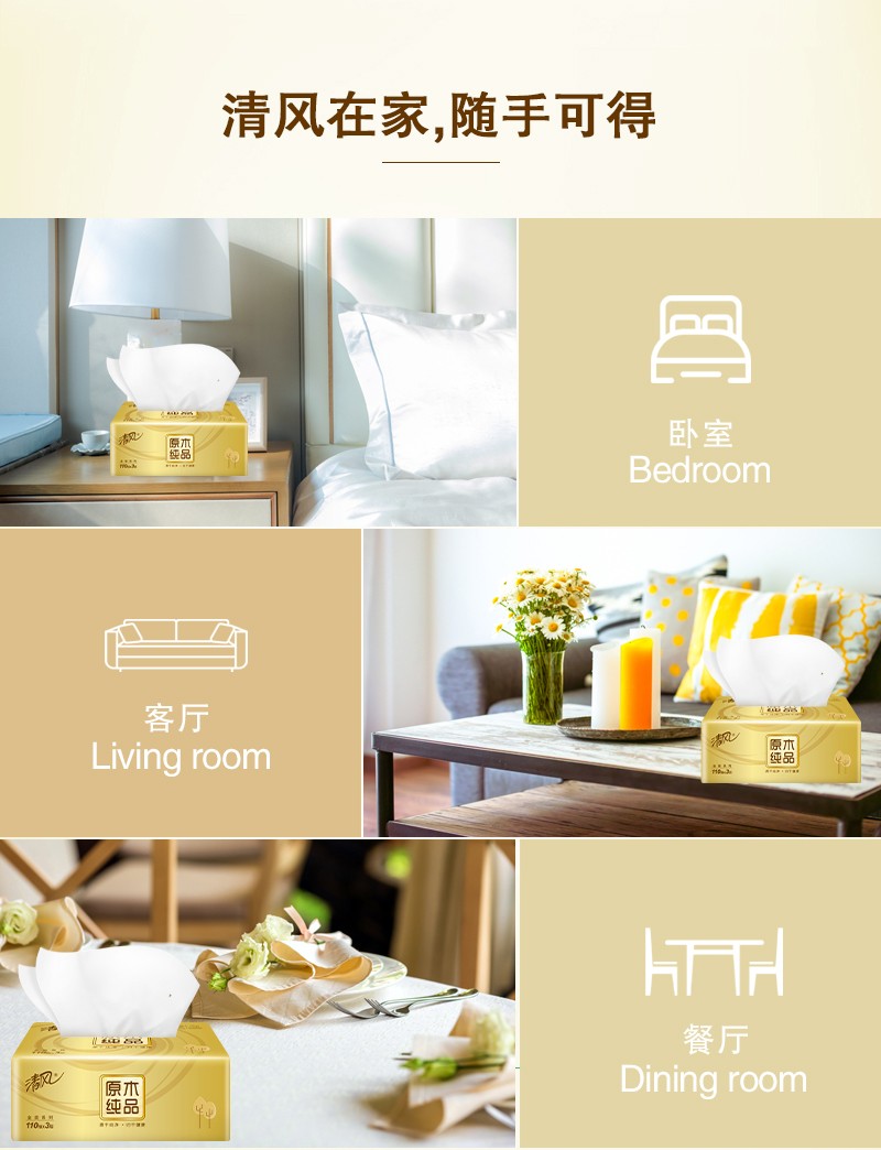 清风原木金装3层110抽/包*5*6抽取式面巾纸BR13SJME1