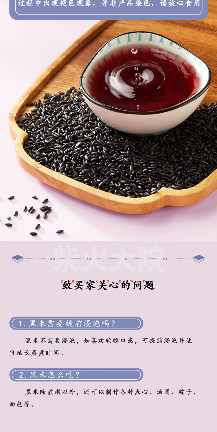 柴火大院 五常黑米1kg 东北黑米 黑香米 粗粮 东北杂粮 真空装