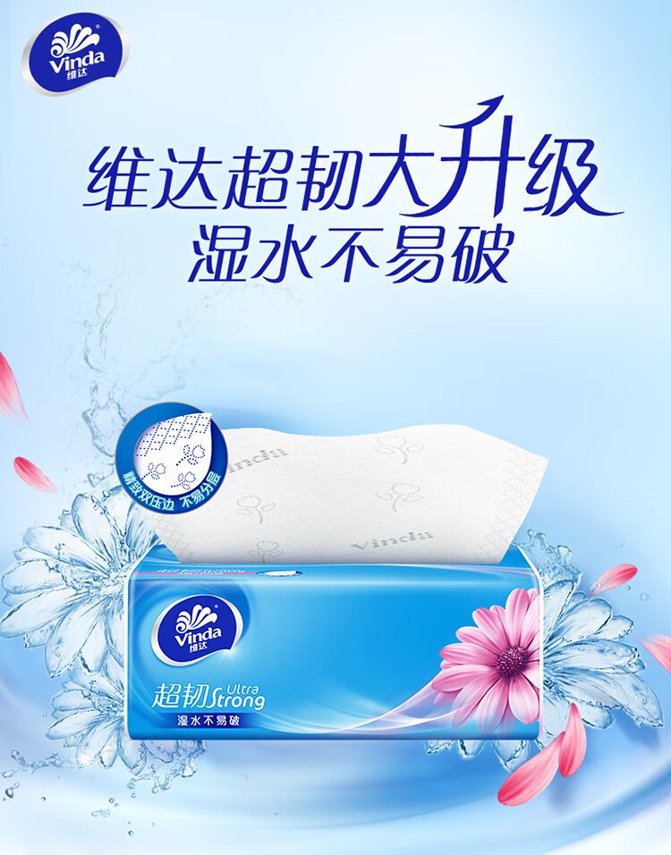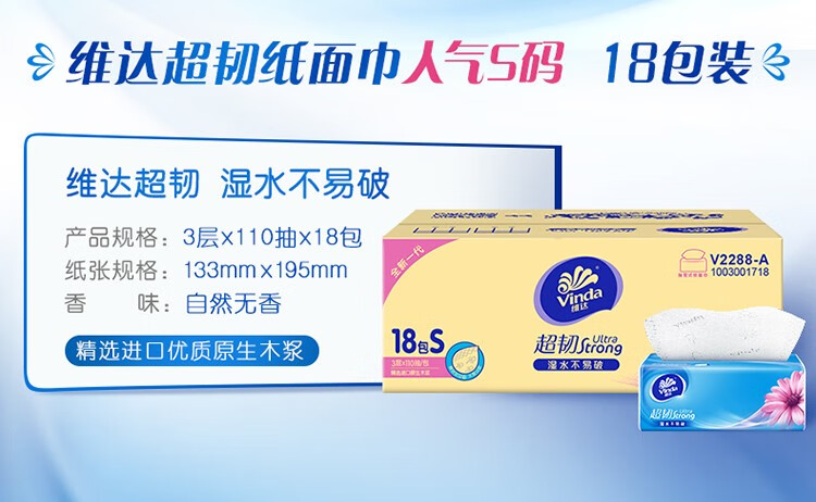 维达(Vinda)抽纸 超韧3层 家用擦手纸 自然无香 面巾纸 卫生纸 纸巾 S码110抽18包