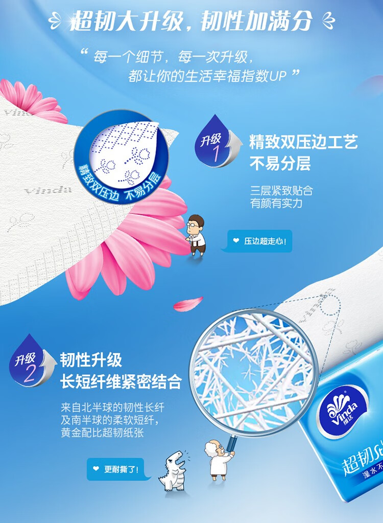 维达棉韧立体美抽纸4D压花100抽3层8包1提