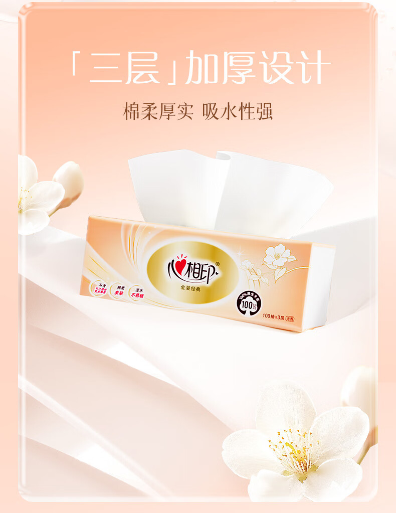 心相印 抽纸100抽*16包-16DT55100面巾纸卫生纸巾塑装纸家用