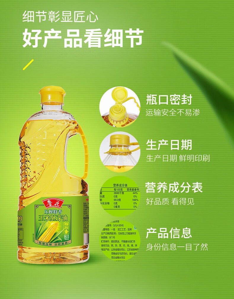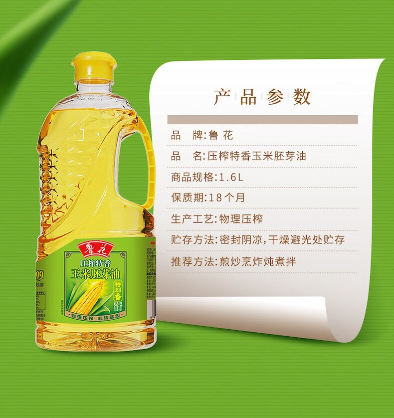 鲁花 玉米胚芽油1.6升