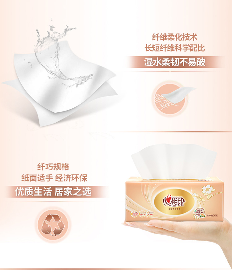 心相印经典系列110抽三层塑装纸面巾(电商)DT24180(箱装)