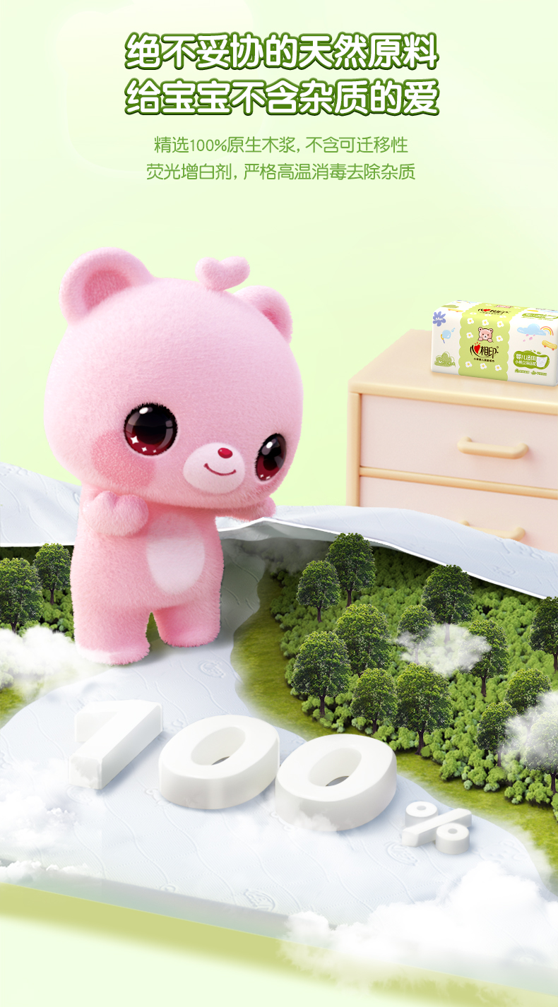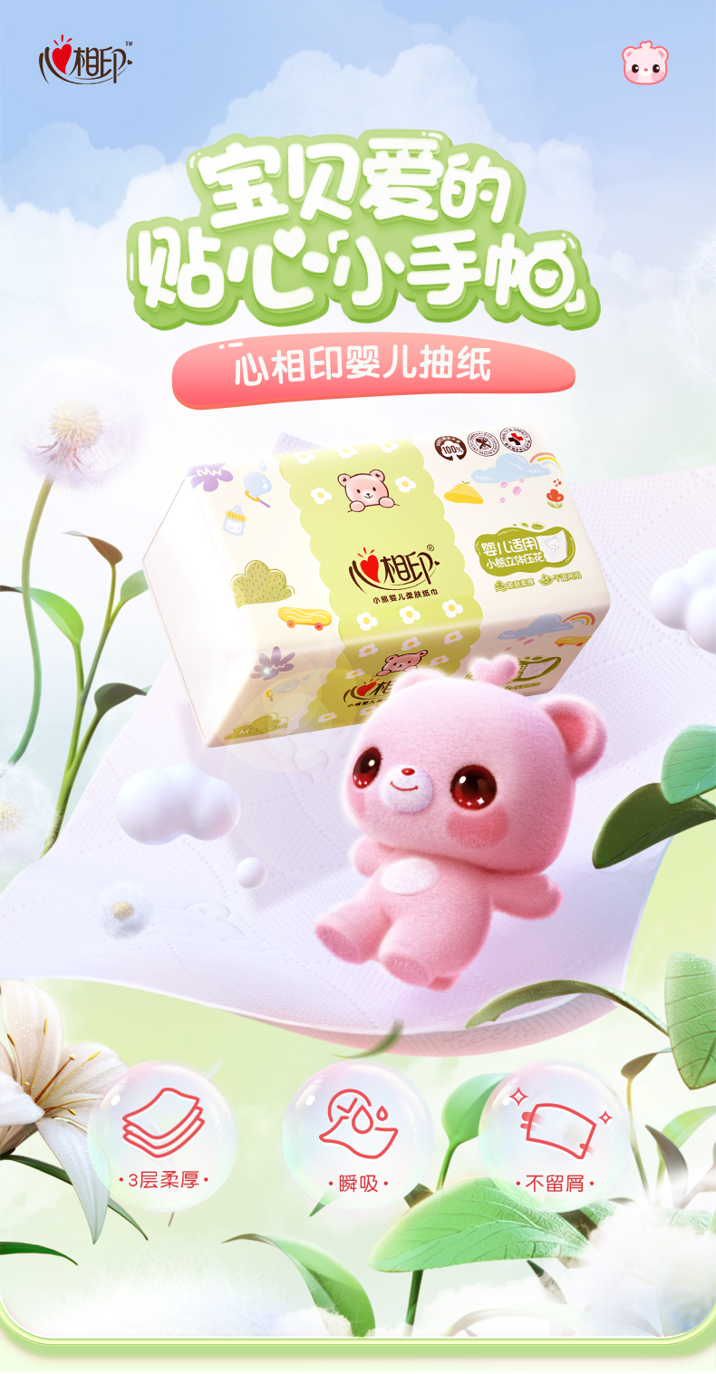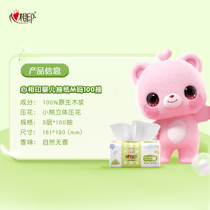 心相印婴用型100抽18包装三层塑装纸面巾(电商装)DT1110
